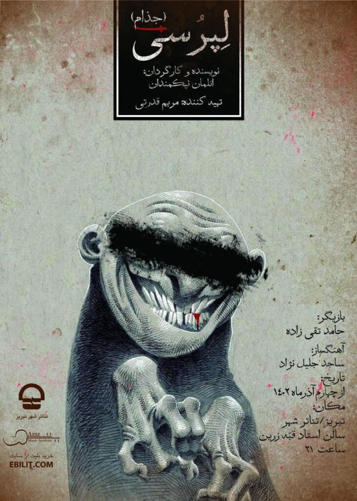 به گزارش صاحب دیوان، نمایش لپرسی (جذام) با حمایت سازمان کشتارگاه صنعتی شهرداری در تئاتر شهر تبریز به روی صحنه می رود. این نمایش به دنبال معرفی سرنوشت نهایی و پایان نتانیاهو نخست وزیر رژیم نامشروع اسرائیل است که خود در کشتارگاهی زندگی می کند و در نهایت بدن خودش طعمه خون خواری ها و […]