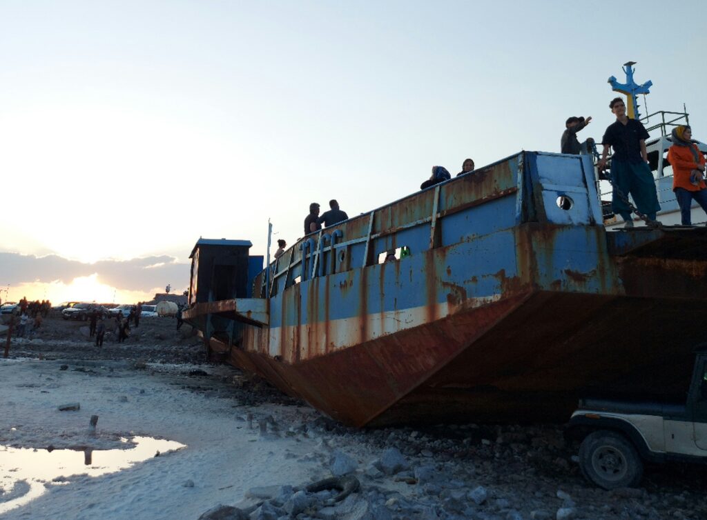 حال زار دریاچه اورمیه؛ اینجا کشتیها به گل نشستهاند!